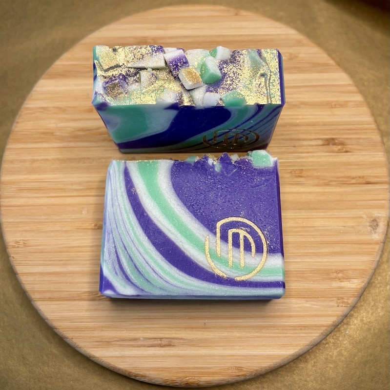 huile d’olive, huile de tournesol, huile de coco, beurre de karité, glycérine, fragrance, lactate de sodium, micas