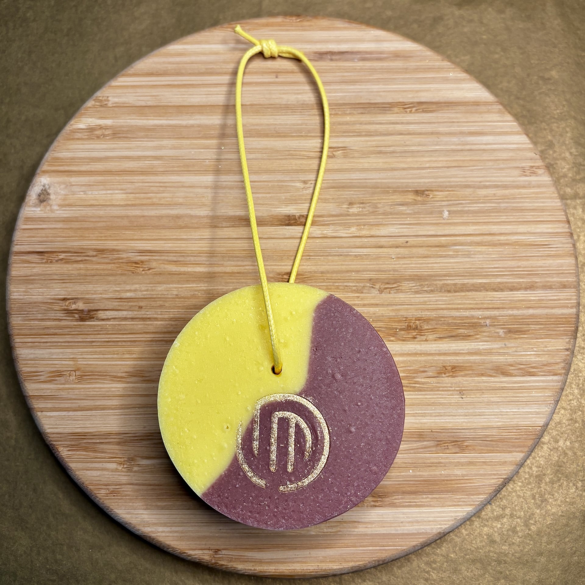Savon de 90 g sur cordelette, surgras à 8%, très doux, riche en beurre de karité, parfumé au fruit de la passion.