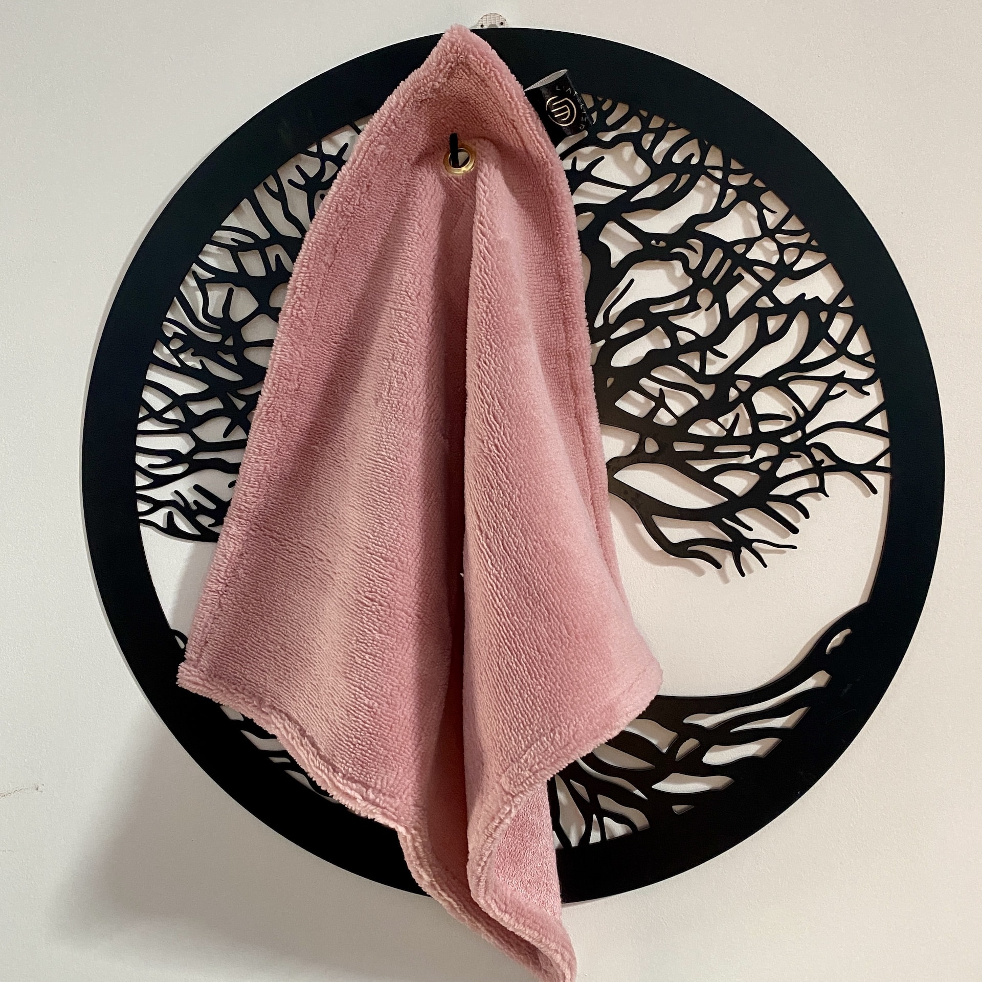 Serviette en éponge bambou, toute douce sur la peau. Dimensions : 30 cm x 30 cm, avec un œillet en métal pour l’accrocher. Imaginée par l’Atelier de Mu. Confectionnée à La Réunion.